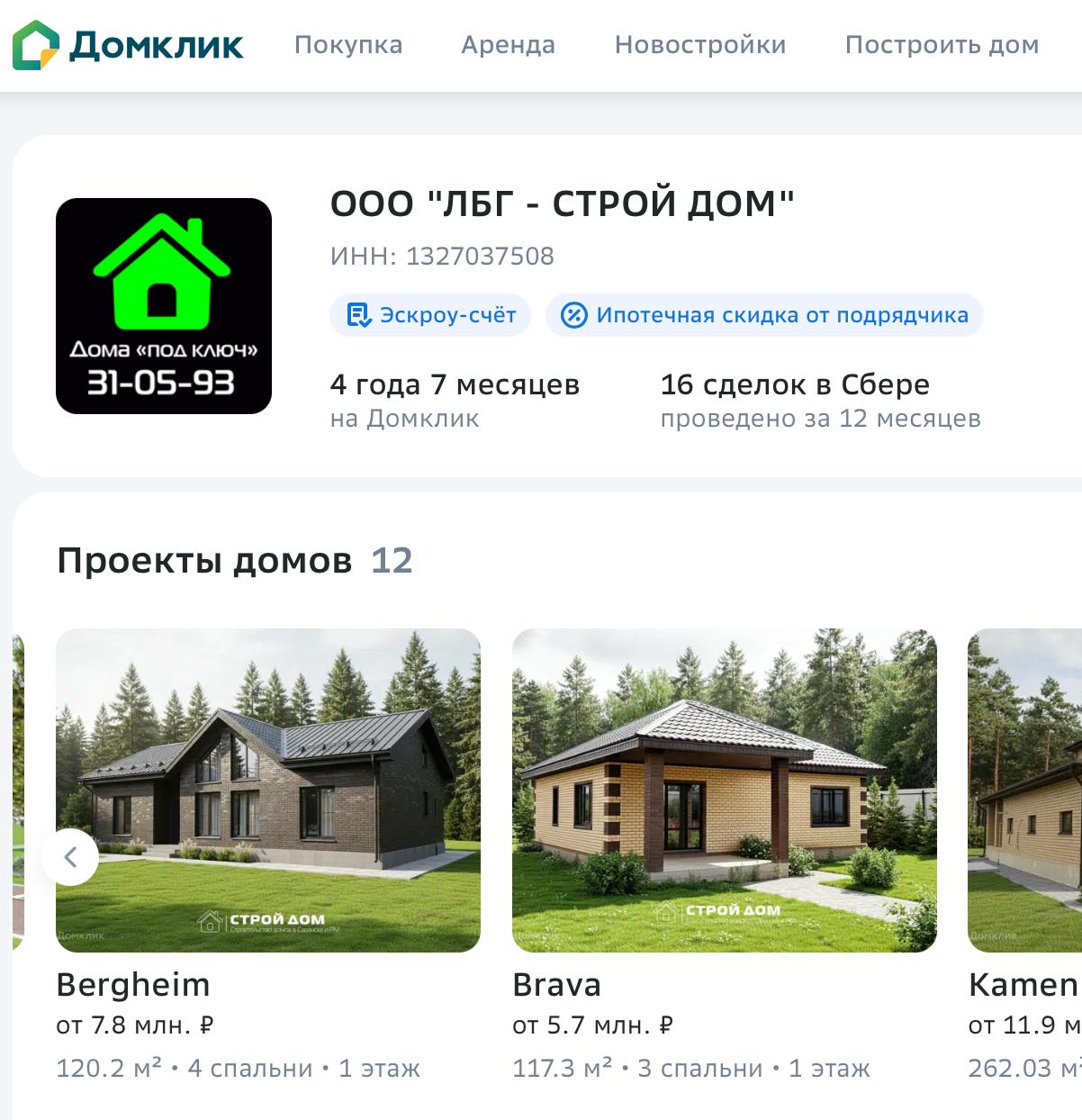 Домклик — понятный и прозрачный на каждом этапе. Мы там представлены, активно работаем и сопровождаем сделки от первого запроса до готового дома.